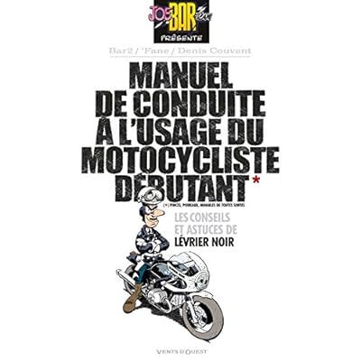 Comme l'indique son titre, ce guide, véritable bible du motard, s'adresse en premier lieu aux usagers débutants... « ainsi qu’aux poireaux et minables de toute sorte », ajoutent ses auteurs. Et quels auteurs ! Bar2, le papa de Joe Bar Team (célèbre BD dédiée au folklore motard), et « Lévrier Noir », alias Denis Couvent, éminent formateur des brigades motorisées d'Île de France, ont associé leur talent pour réunir dans cet ouvrage tout ce qu'un bon motard doit savoir avant d’enfourcher son bolide. Gageons que ces 130 pages de conseils et astuces, illustrées de nombreux dessins issus des albums de Fane et Bar2, sauront passionner le lecteur et l'initieront avec humour aux très sérieuses choses de la route.